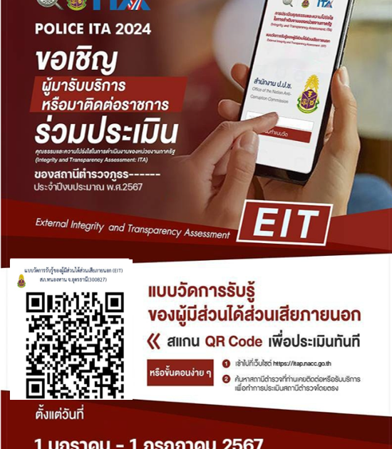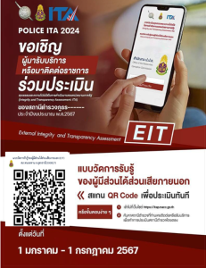 ขอเชิญชวนผู้มารับบริการหรือผู้มาติดต่อราชการ ร่วมประเมิน คุณธรรมและความโปร่งใส ในการดำเนินงาน ของหน่วยงานภาครัฐ ITA 2024
