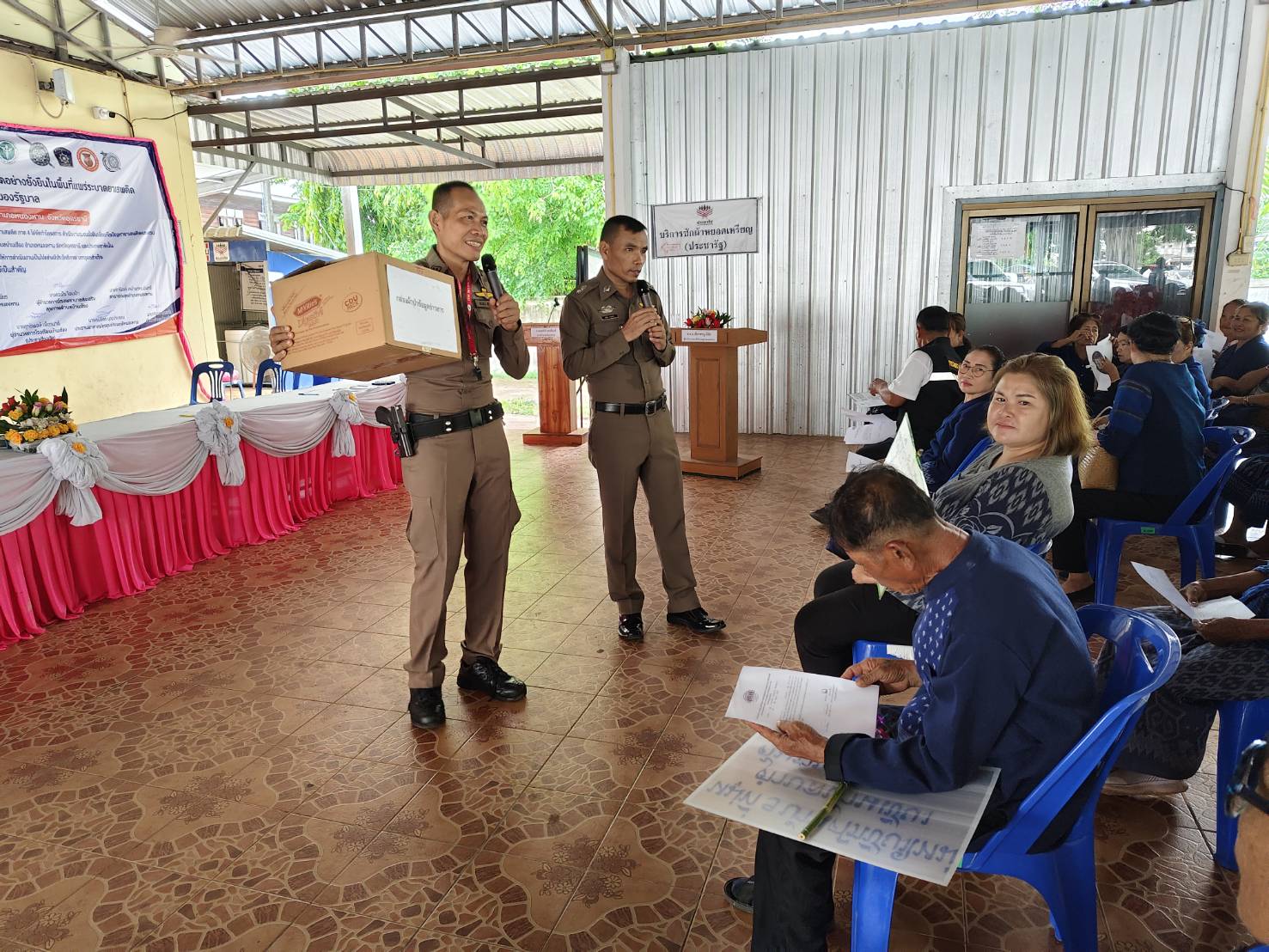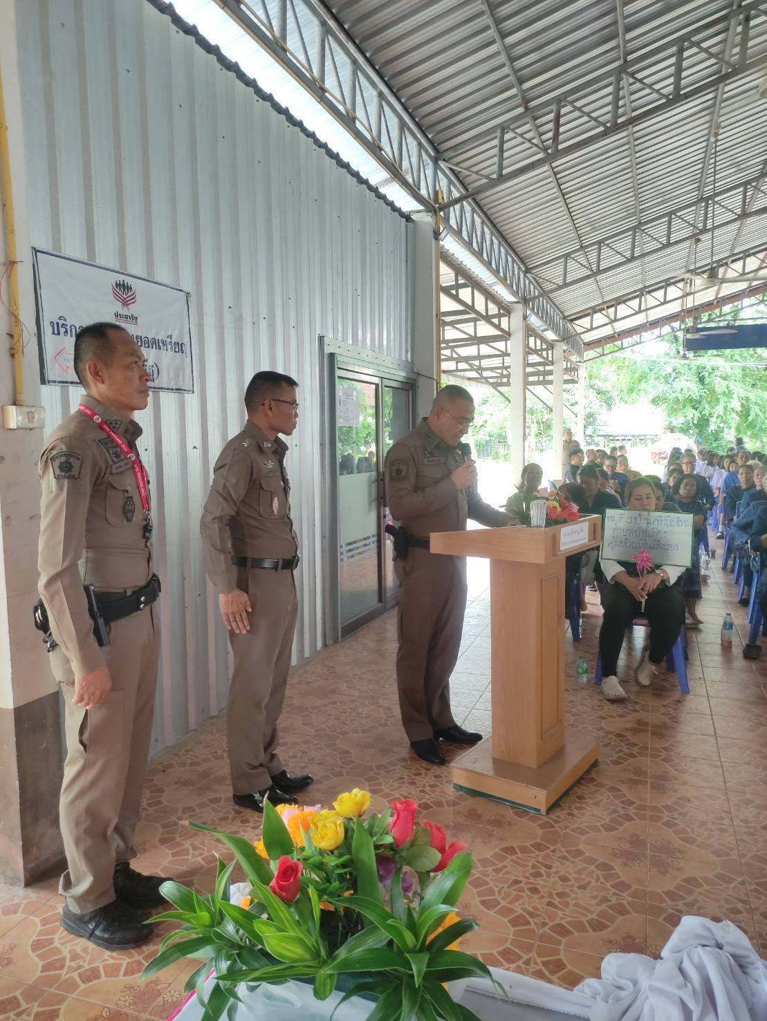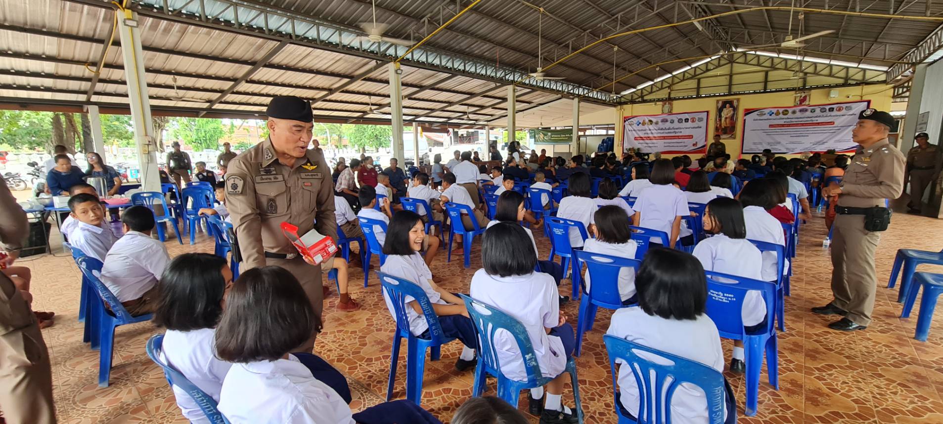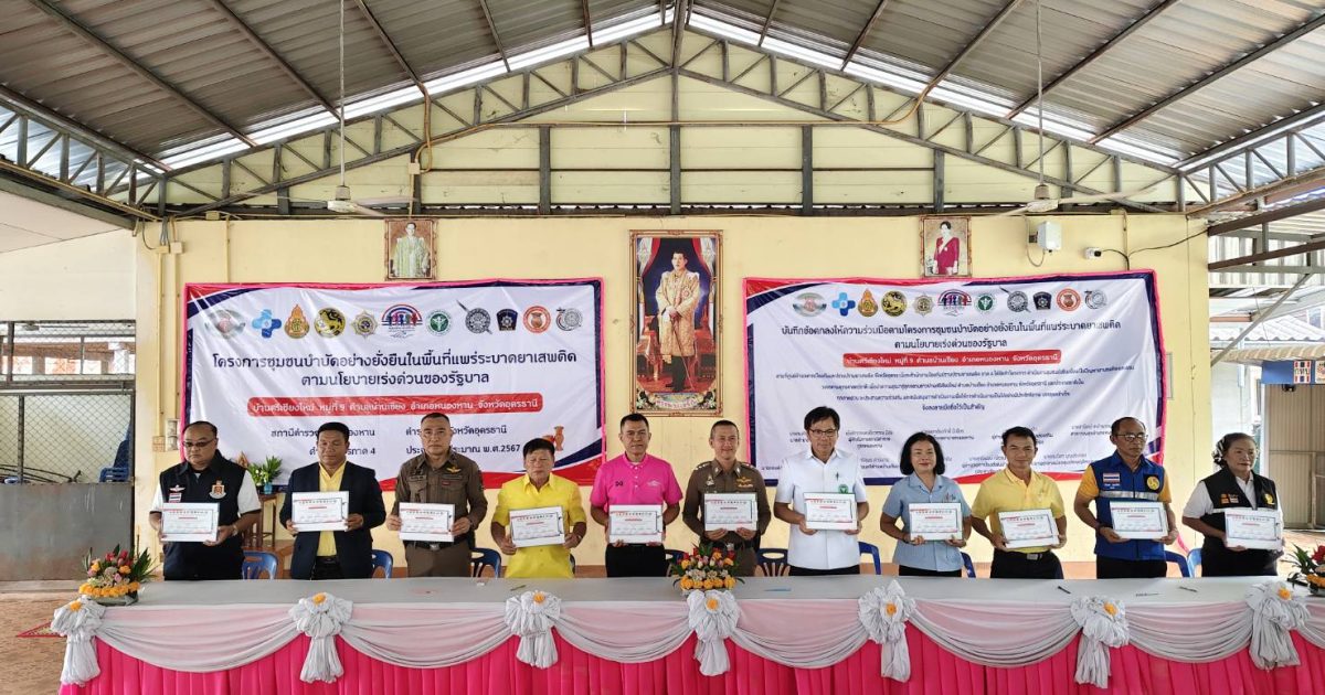 พิธีเปิดชุมชนบำบัดอย่างยั่งยืน 06/10/2567 โดย admin / ข่าวประชาสัมพันธ์,ข่าวกิจกรรม,ข่าวประชาสัมพันธ์,ไม่มีหมวดหมู่ สภ.หนองหาน เมื่อวันที่ 10 มิ.ย.67 เวลาประมาณ 10.30 น. นายสมศักดิ์ แสนอินทร์ นายอำเภอหนองหาน ประธาน พ.ต.อ.อนุศักดิ์ ศักดาวัชรานนท์ รอง ผบก.ภ.จว.อุดรธานี ประธานฝ่ายตำรวจ พร้อมด้วย พ.ต.อ.เชี่ยวชาญ มีชัย ผกก.สภ.หนองหาน พ.ต.ท.มานิตย์ วงษ์เส รอง ผกก.สส.ฯ พ.ต.ท.ศิระ ภูมิสถาน รอง ผกก.ป. พ.ต.ท.พรพิทักษ์ ลุนชัยภา สวป. พ.ต.ต.ฉลอง ยอดสง่า สวป(ชส) ร.ต.อ.ศุภกฤต ขันตีคำ รอง สวป. พร้อมข้าราชการตำรวจ สภ.หนองหาน ชุดชุมชนยั่งยืน ร่วมพิธีเปิดโครงการชุมชนบำบัดอย่างยั่งยืนในพื้นที่แพร่ระบาดยาเสพติดตามนโยบายเร่งด่วนของรัฐบาล ปีงบประมาณ 2567 โดยมีภาคีเครือข่ายประกอบด้วย ผู้อำนวยการโรงพยาบาลหนองหาน, ผู้อำนวยการโรงพยาบาลส่งเสริมสุขภาพตำบลบ้านเชียง, สาธารณะสุขอำเภอหนองหาน, นายยกองค์การบริหารส่วนตำบลบ้านเชียง ,นายกเทศมนตรีตำบลบ้าคเชียง ผู้ใหญ่บ้านหมู่ 9 ตำบลบ้านเชียง ,ผู้อำนวยการโรงเรียนบ้าเชียง (ประชาเชียงเชิด), ประธานอาสาสมัครคุมประพฤติหนองหาน ,กำนันตำบลบ้านเชียง, ราษฎรบ้านศรีเชียงใหม่หมู่ที่ 9 ตำบลบ้านเชียง ร่วมในพิธี ณ ศาลากลางบ้าน หมู่ที่ 9 ตำบลบ้านเชียง อ.หนองหาน จว.อุดรธานี List Item List Item List Item List Item Previous Next Facebook iconFacebookTwitter iconTwitterLINE iconLine