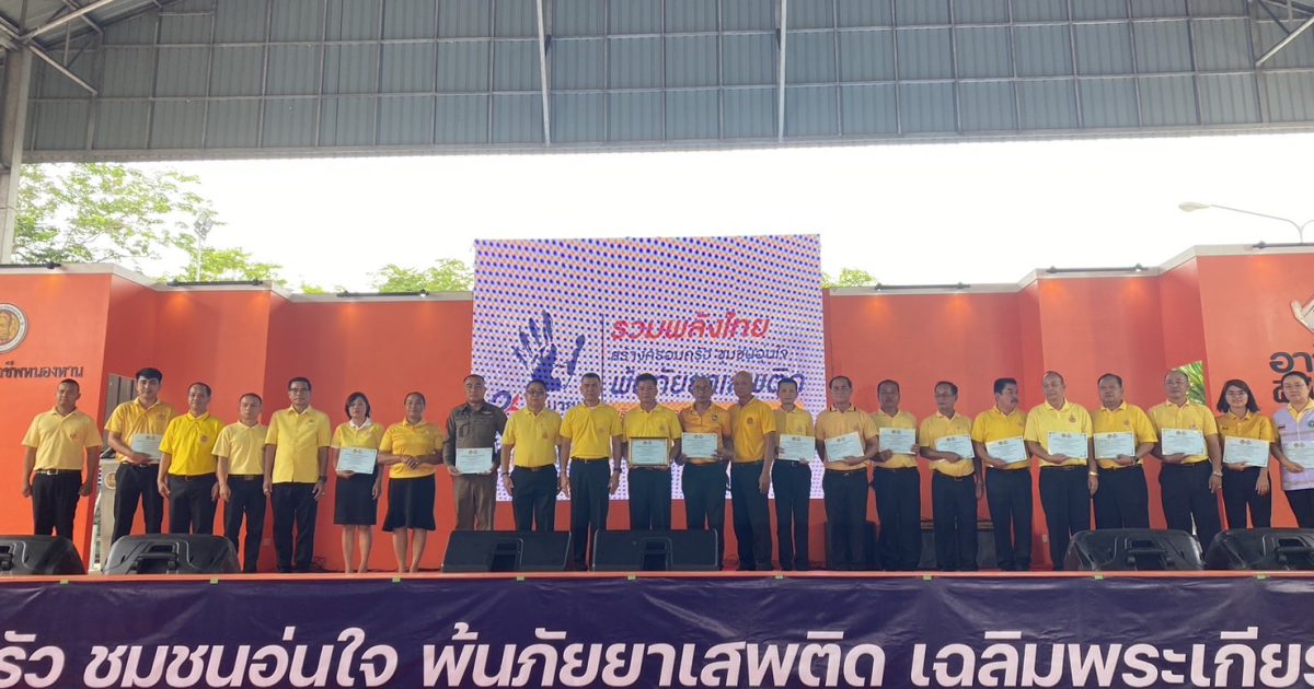 วันต่อต้านยาเสพติดโลก 06/26/2567 โดย admin / ข่าวประชาสัมพันธ์,ข่าวภารกิจผู้บังคับบัญชา,ไม่มีหมวดหมู่ เมื่อวันที่ 26 มิถุนายน 2567 เวลา 08.00 น. พ.ต.อ.เชี่ยวชาญ มีชัย ผกก.สภ.หนองหาน ร่วมกับ ฝ่ายปกครอง อำเภอหนองหาน องค์กรปกครองส่วนท้องถิ่น กำนันผู้ใหญ่บ้าน วิทยาลัยการอาชีพหนองหาน และภาคีเครือข่าย พ่อค้าประชาชนในพื้นที่ ตลอดจนนักเรียนนักศึกษา ร่วมกิจกรรม วันต่อต้านยาเสพติดโลก ณ อาคารเอนกประสงค์ วิทยาลัยการอาชีพหนองหาน โดยมี นายสมศักดิ์ แสนอินทร์ นายอำเภอหนองหาน เป็นประธานในพิธี List Item Previous Next Facebook iconFacebookTwitter iconTwitterLINE iconLine