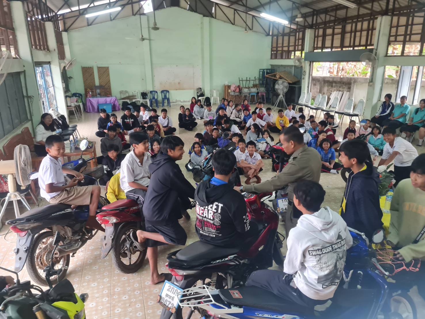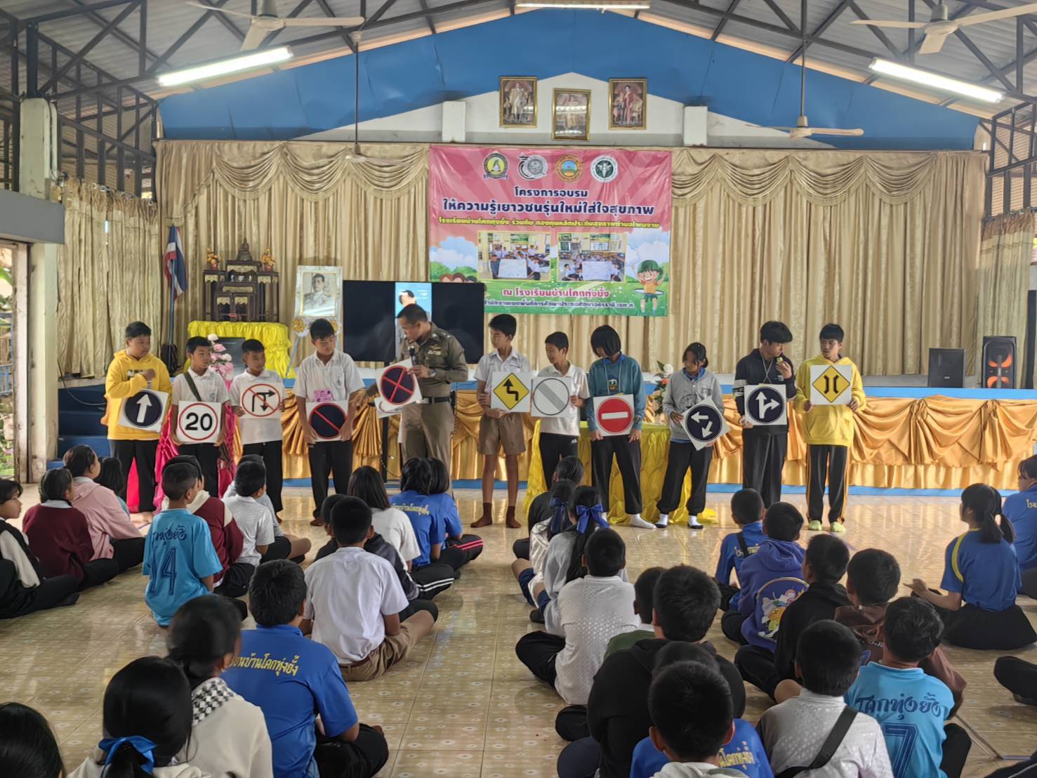 อบรมกฏจราจรและพิษภัยของยาเสพติด 03/07/2568 โดย admin / ข่าวประชาสัมพันธ์,ข่าวกิจกรรม,ไม่มีหมวดหมู่ สภ.หนองหาน วันที่ 7 มีนาคม 2568 เวลาประมาณ 08.00 น. โดยการอำนวยการของ พ.ต.อ.เชี่ยวชาญ มีชัย ผกก.สภ.หนองหาน พ.ต.ท.ศิระ ภูมิสถาน รอง ผกก.ป.สภ.หนองหาน มอบหมายให้ พ.ต.ท.ฉลอง ยอดสง่า สวป.ชส.สภ.หนองหาน ร.ต.อ.ศุภกฤต ขันตีคำ รอง สวป.สภ.หนองหาน อบรมให้ความรู้กฎหมายจราจร และพิษภัยของยาเสพติด ให้กับคณะครู นักเรียน โรงเรียนบ้านโคกทุ่งยั้ง ต.โพนงาม อ.หนองหาน จ.อุดรธานี โดยมีผู้เข้ารับการอบรม จำนวน 100 คน Previous Next Facebook iconFacebookTwitter iconTwitterLINE iconLine