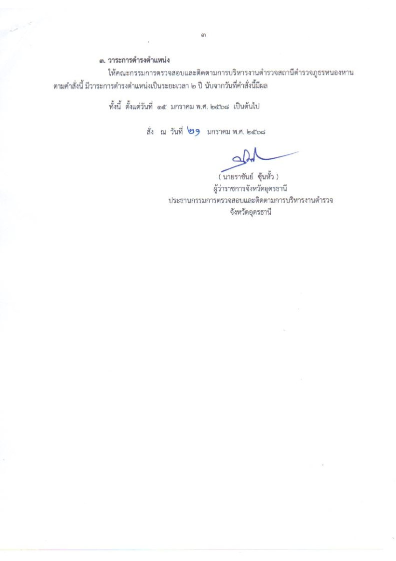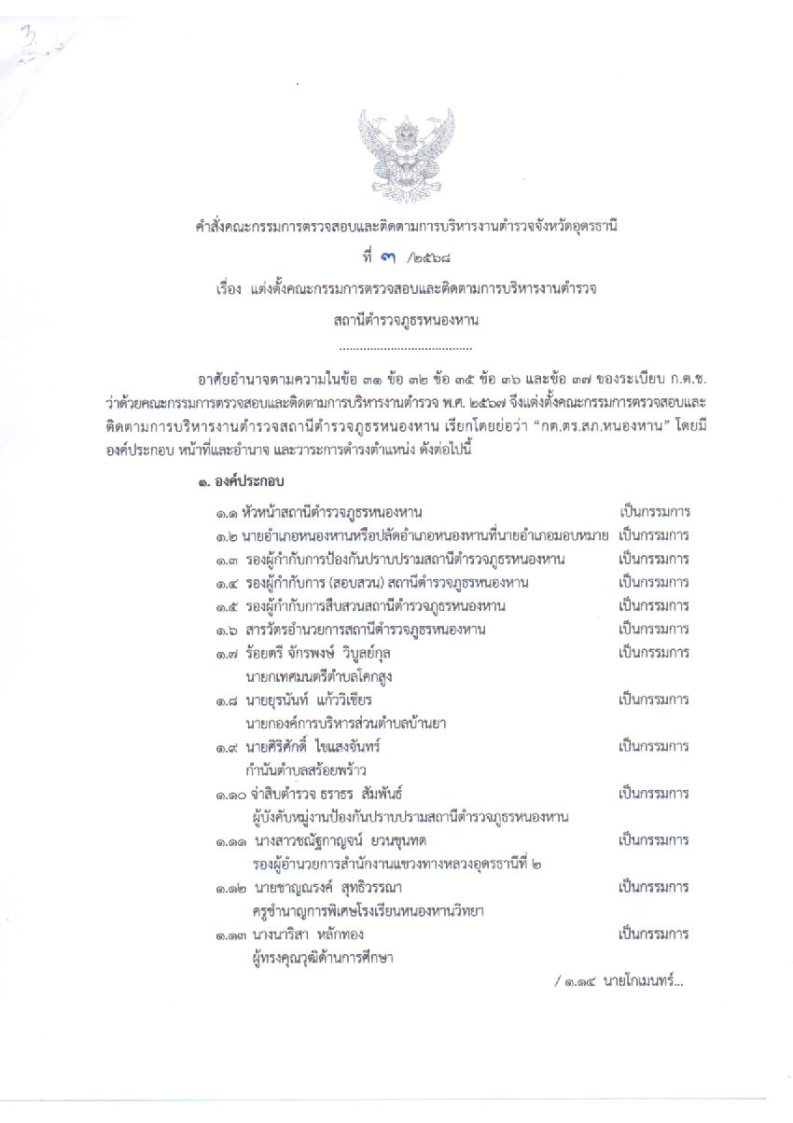 คำสั่ง แต่งตั้งคณะกรรมตรวจสอบและติดตามการบริหารงานตำรวจ สถานีตำรวจภูธรหนองหาน